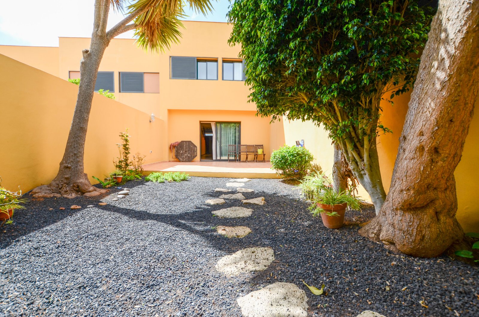 Entrada con un patio cubierto de unos 25m2.